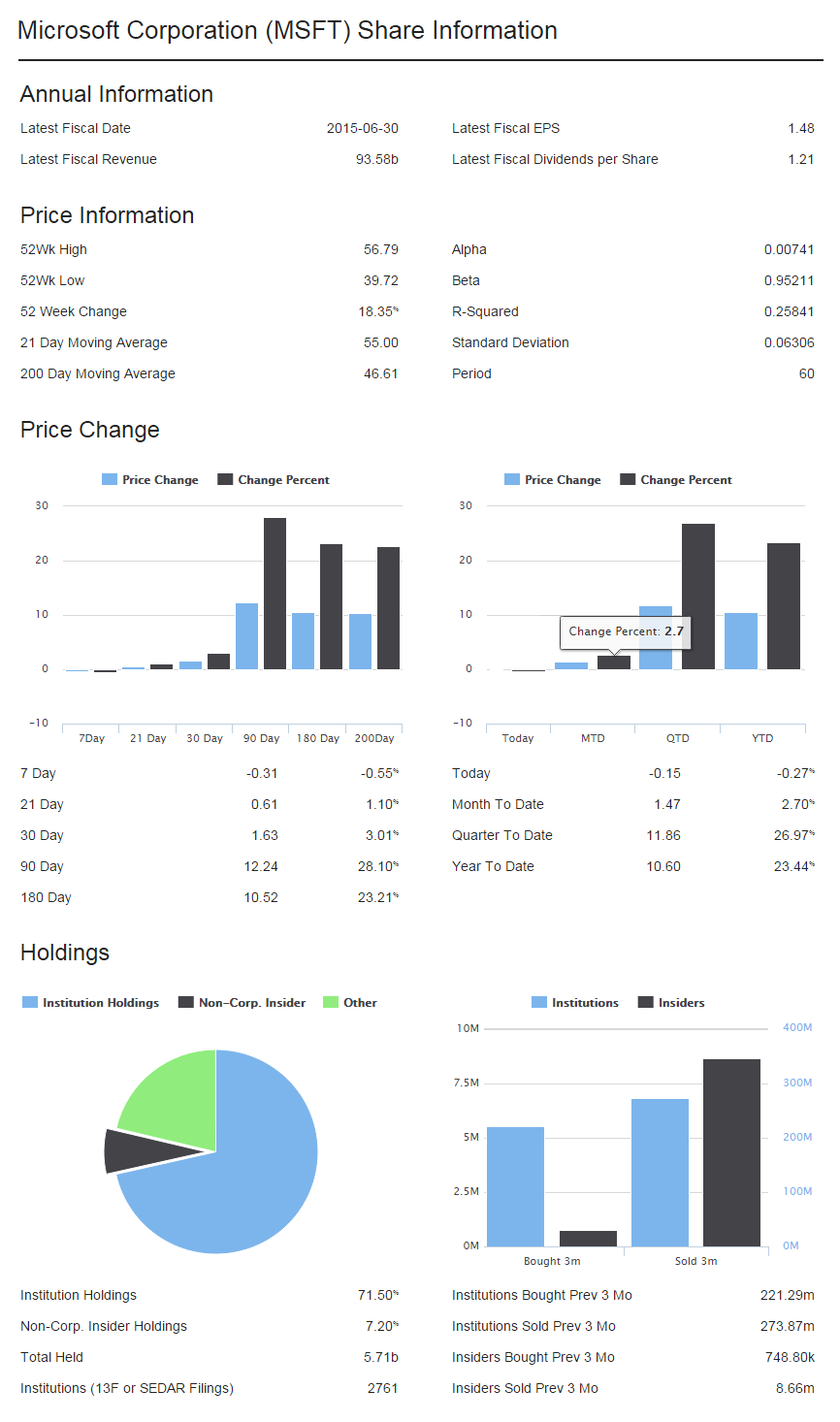 QuoteMedia's Share Information content solutions provide extensive information about how a company and its stock are performing. These fully customizable modules embed directly in your site, providing comprehensive intelligence on how a company and its shares are performing.